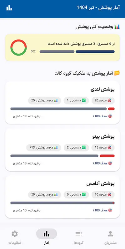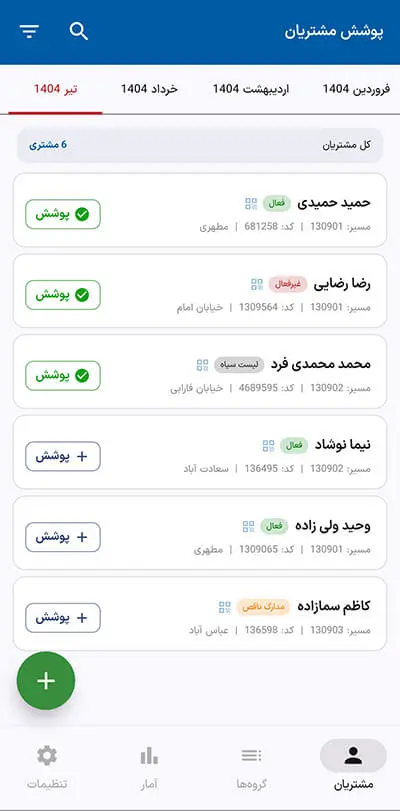 برای هر مشتری، تنها با چند کلیک میتوانید وضعیت پوشش محصول را ماهبهماه ذخیره کنید.